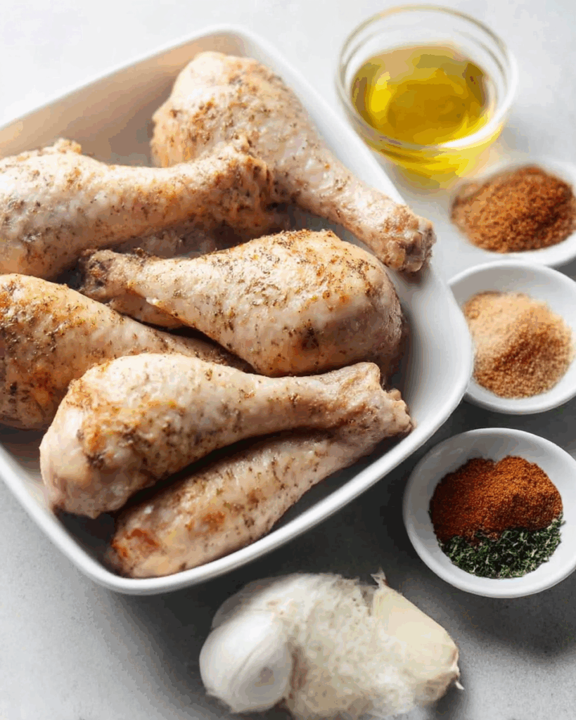 - Combine Ingredients: In a bowl, toss drumsticks with olive oil, garlic powder, paprika, salt, and pepper.
