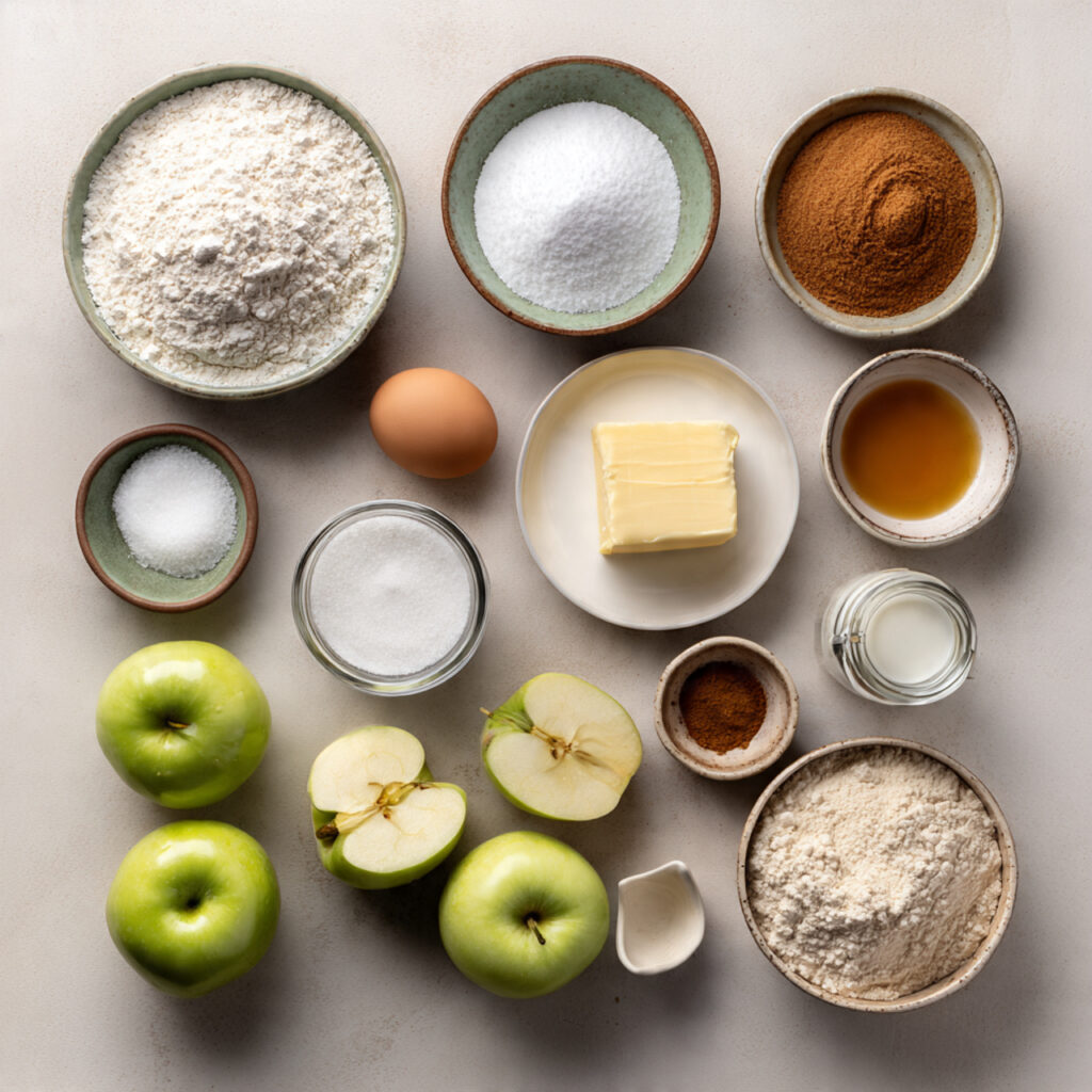 Now let’s gather everything you need. Each ingredient contributes to that soft, apple-filled bite.