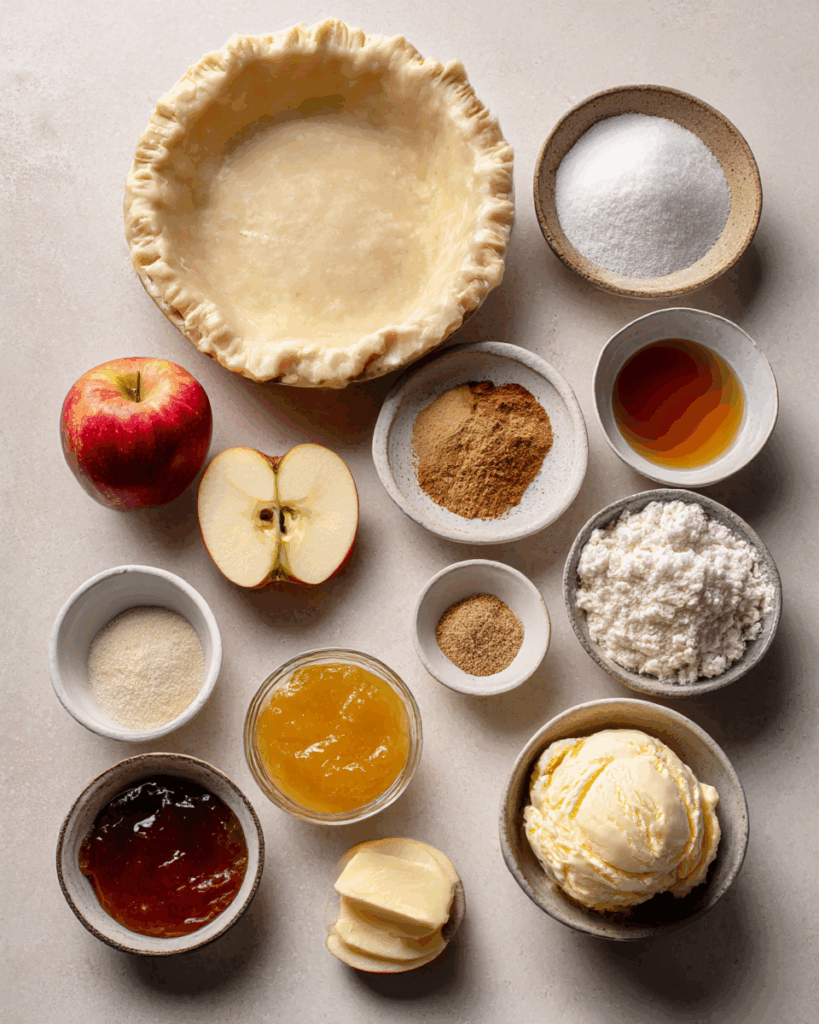 - Apples: 3 medium, peeled, cored, and thinly sliced — the star of the show.