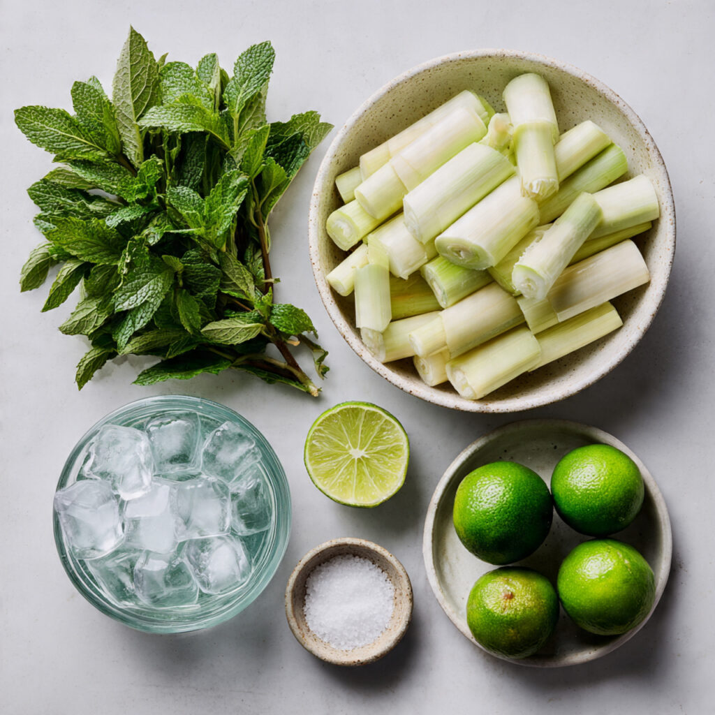 Sugarcane: This fibrous stalk is the heart of the drink, bringing an earthy sweetness and natural energy boost.