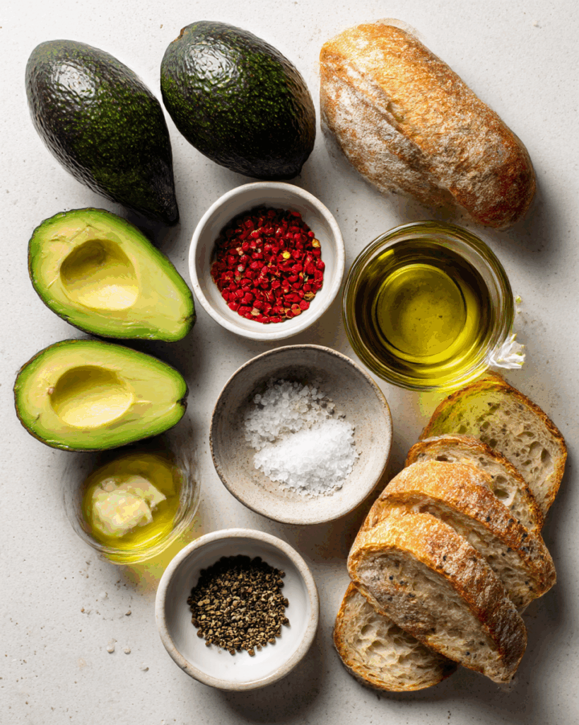 Rustic Bread: The perfect carrier—sturdy, toasty, and full of character. It holds the avocado like a champ and delivers that satisfying crunch.
