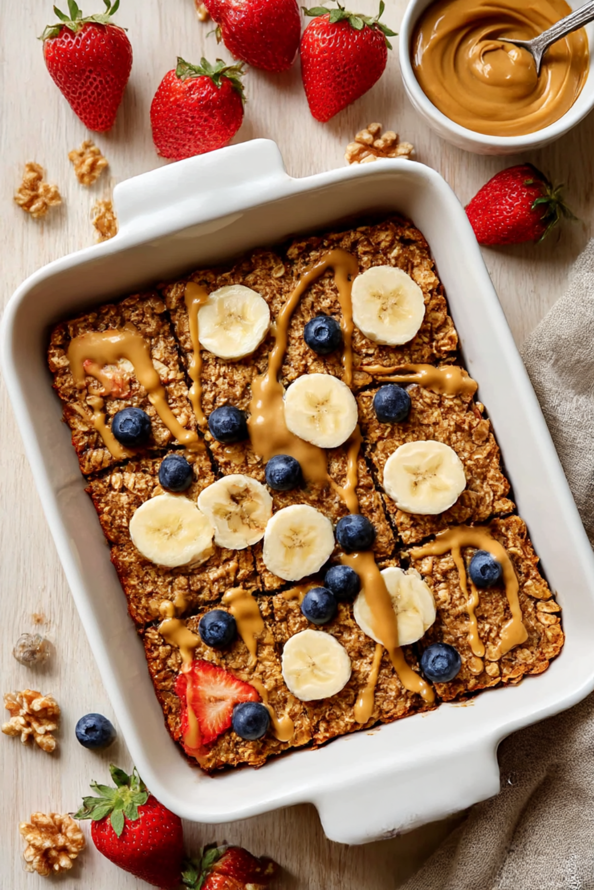 Banana Baked Oatmeal is a warm, hearty breakfast packed with ripe bananas, oats, cinnamon, and a drizzle of peanut butter. Perfect for meal prep or cozy mornings, it’s naturally sweet, full of texture, and endlessly customizable.