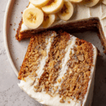 This Banana Bread Cake with Cream Cheese Frosting is a delicious twist on classic banana bread, transformed into a moist, layered dessert with tangy cream cheese frosting and fresh banana slices.