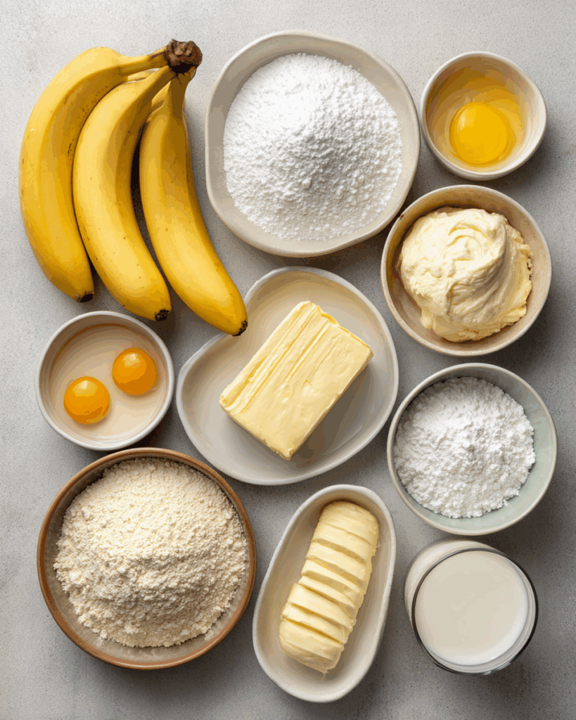 Ingredients in Banana Bread Cake with Cream Cheese Frosting