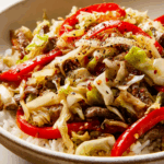 A quick and flavorful stir-fry with juicy ground beef, crisp cabbage, and bell peppers tossed in a bold black pepper sauce. This dish is perfect for busy weeknights and delivers takeout-style flavor in just 25 minutes.