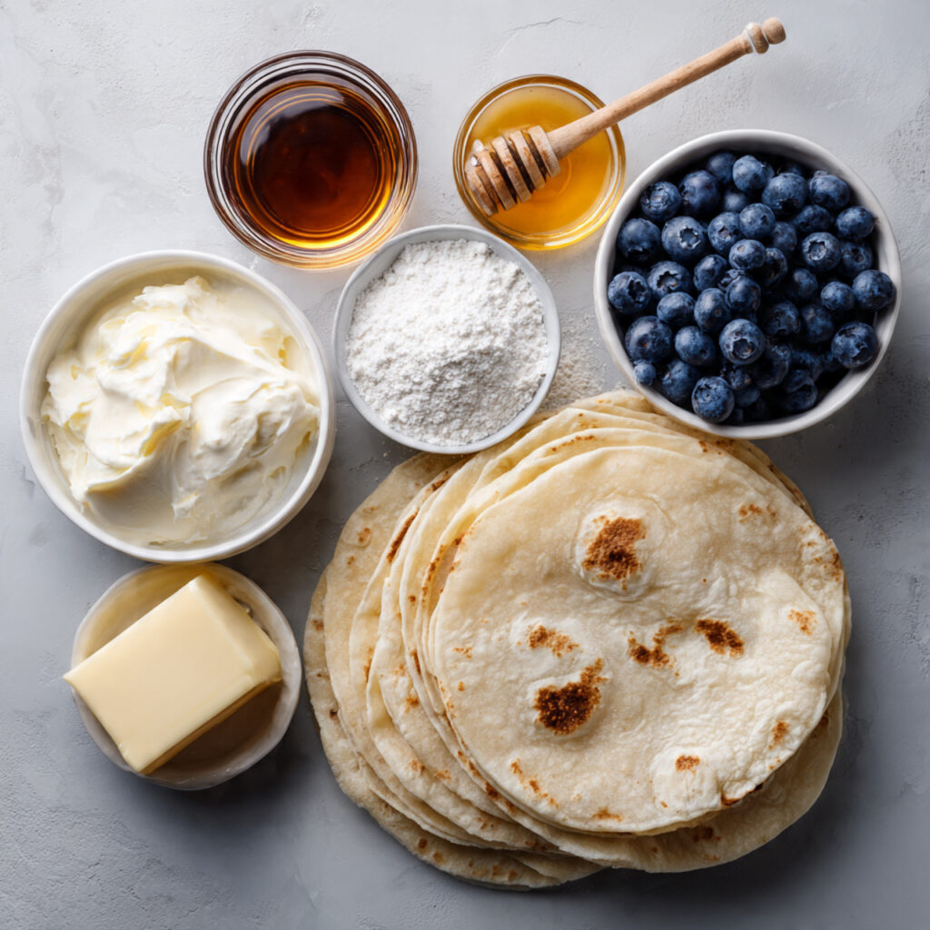 This recipe was born from one of those slow Sunday mornings where the fridge had odds and ends but the craving for something sweet and satisfying was strong. A few fresh blueberries, some leftover tortillas, and a dollop of cream cheese became a new family favorite. It’s simple, it’s playful, and it comes together in a flash — perfect for busy mornings or lazy brunches alike.