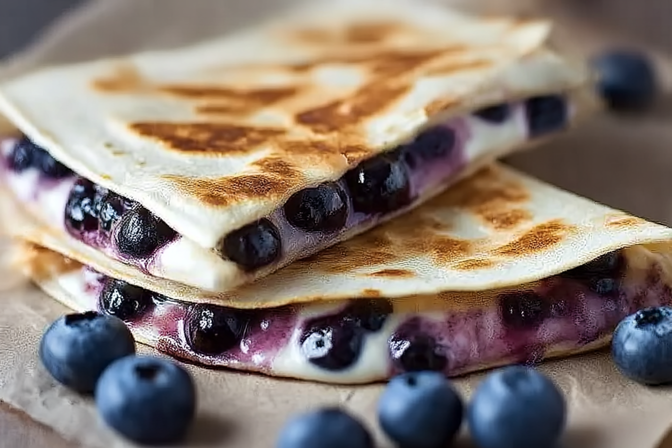 - Assemble the Dish: Spread cream cheese over one tortilla, sprinkle the blueberry mixture evenly, and top with the second tortilla.