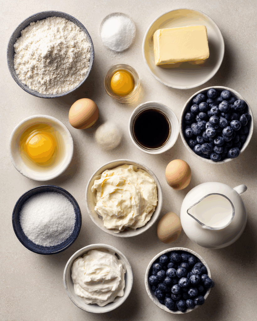 - Fresh Blueberries: 1 cup – Juicy bursts of flavor throughout the cake.