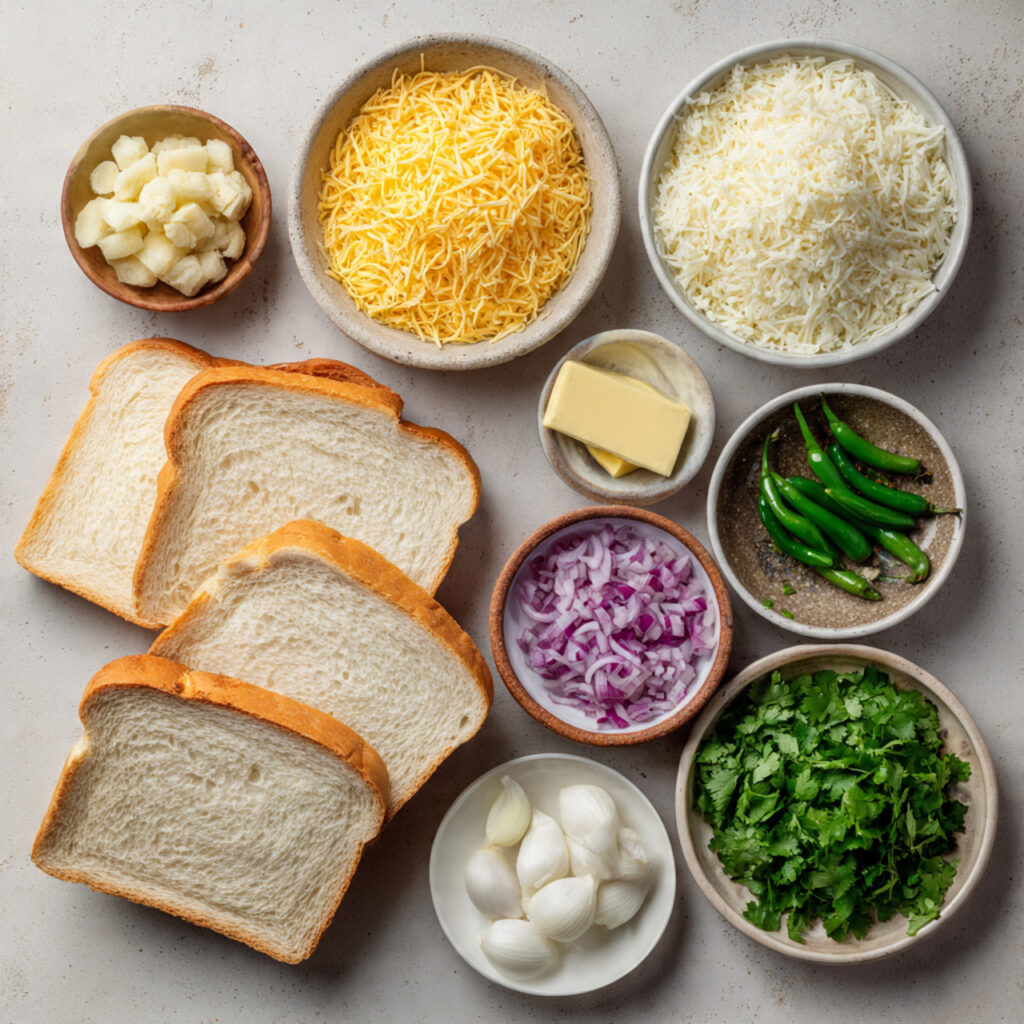 Green Chillies: These small but mighty ingredients are what give this toastie its punch. They’re finely chopped and scattered throughout the filling, so every bite carries a little fire.