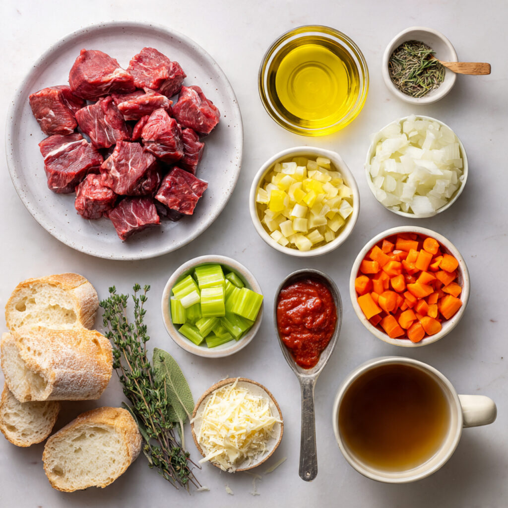 A rich and hearty Braised Beef Soup simmered with tender vegetables, paired with golden cheese bread for the ultimate comfort meal. Perfect for chilly nights or cozy gatherings.