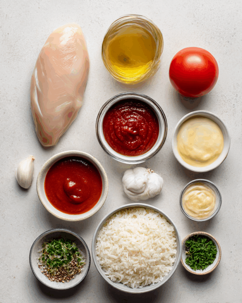 - Cooked White Rice: For serving—neutral backdrop to the rich sauce.