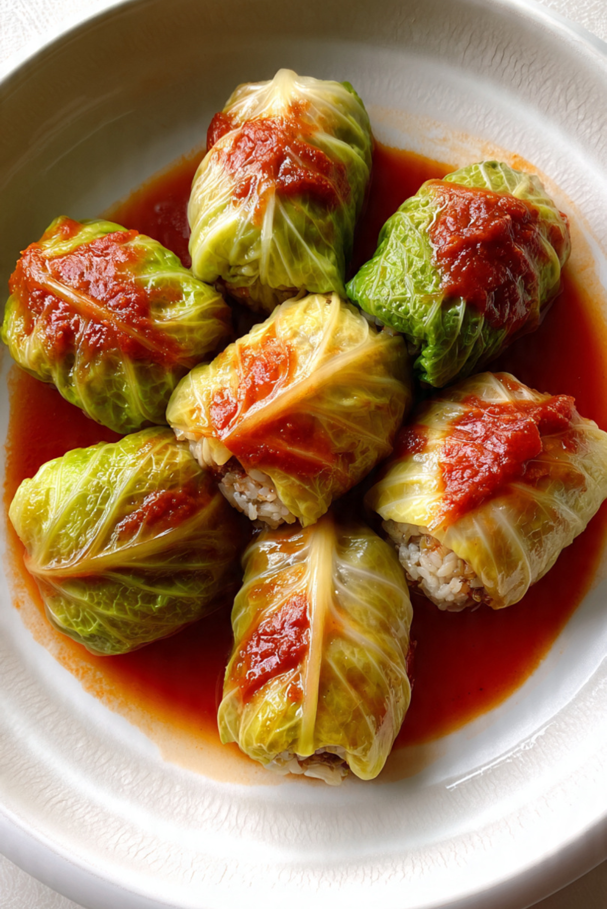 The cabbage becomes incredibly soft and tender as it cooks, while the filling remains hearty and flavorful. The tomato sauce absorbs into the cabbage and filling, adding depth and richness to every bite.