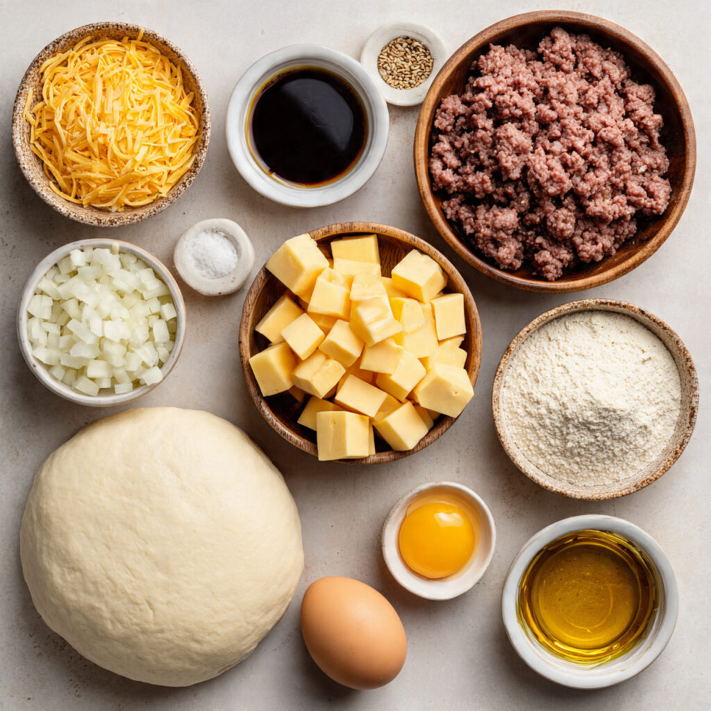 This recipe was born out of a playful kitchen experiment. I was craving a cheeseburger but also wanted something indulgent, dramatic, and full of fun. So I took the classic flavors — seasoned ground beef, sharp cheddar, soft bread — and tucked them into a baked pocket with a molten cheese center. What came out was a dish that looks like a mini cake but eats like your dreamiest burger fantasy. It’s now a staple for game days, cozy nights, and anytime I want to impress with minimal effort.