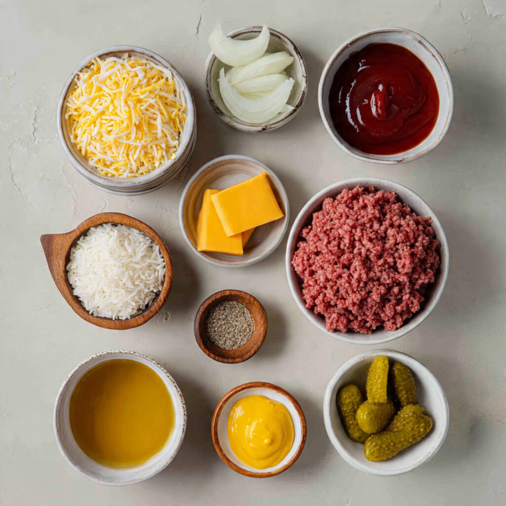 A quick and comforting one-skillet meal that combines all the flavors of a cheeseburger — seasoned ground beef, melty cheese, tangy pickles, and fluffy rice — into a warm and satisfying dish.
