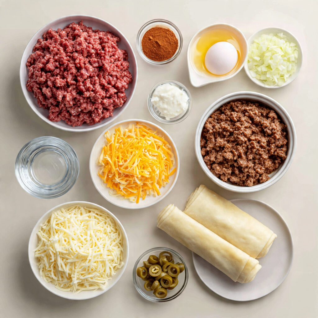 - Ground Beef: 1 pound – Savory and juicy base for the filling.