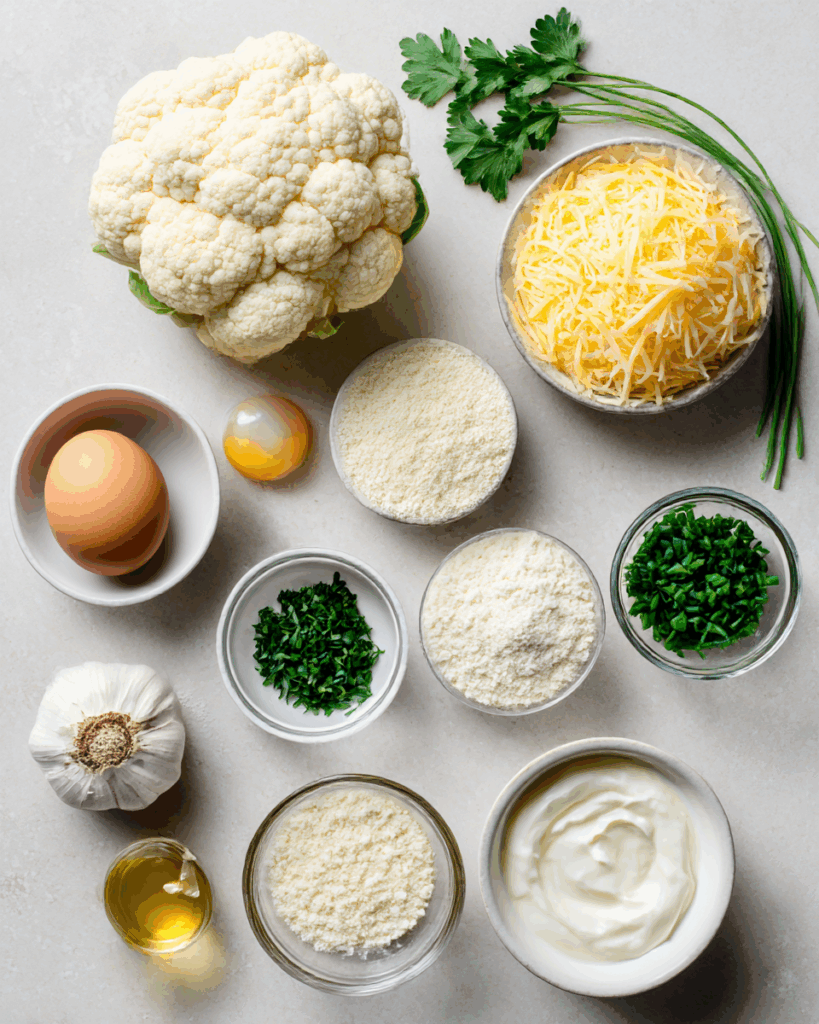 1. Cauliflower Florets: 1 medium head (about 4 cups), steamed or roasted and finely chopped — provides the mild base and soft texture.