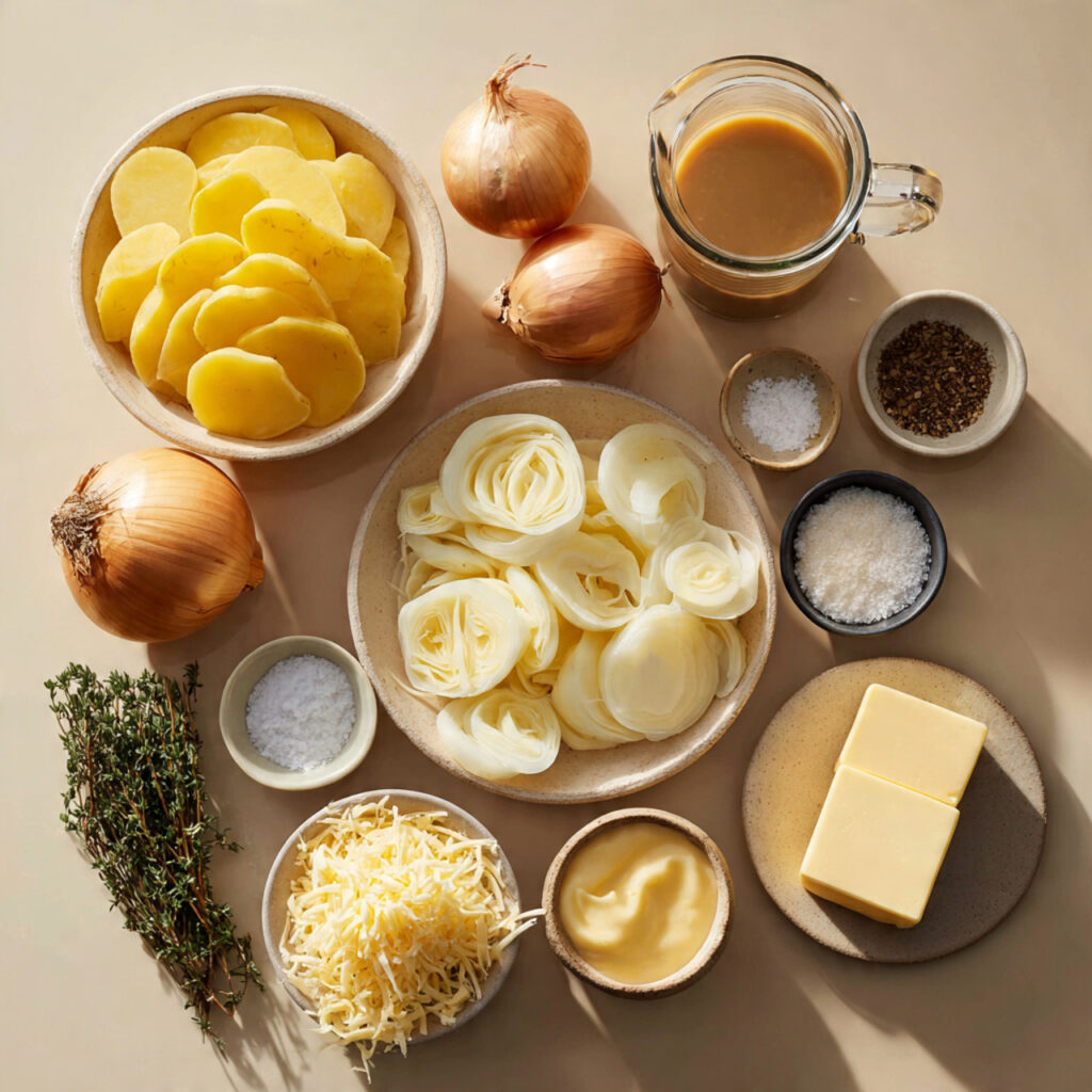 Ingredients in Cheesy French Onion Scalloped Potatoes