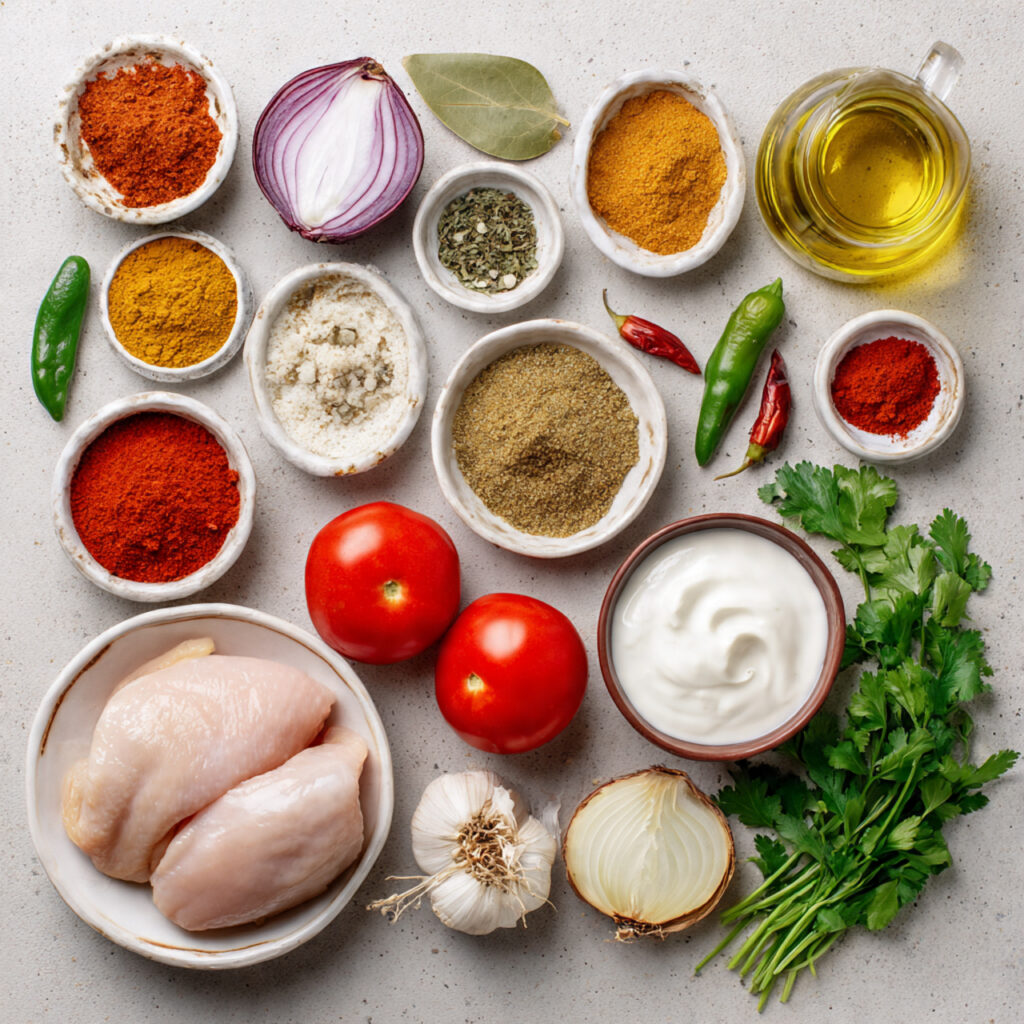 - Chicken (bone-in or boneless): 500 grams. The star protein, juicy and flavorful when cooked in spices.