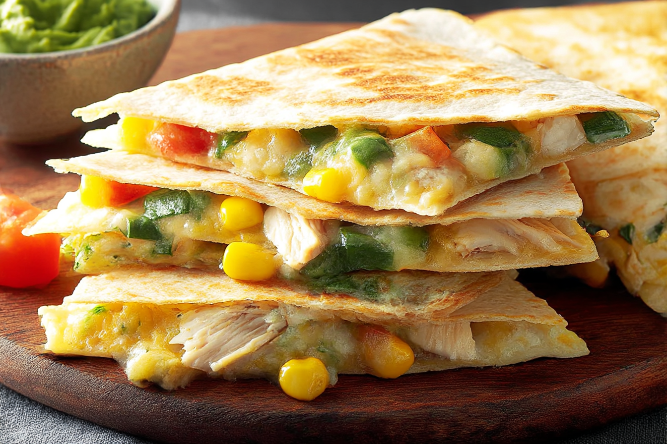 Presentation is key! Stack your quesadilla wedges like a fan on a wooden board, garnish with chopped cilantro, and place lime wedges and a trio of dips alongside. Add a sprinkle of cotija cheese over the top for a gourmet finish.