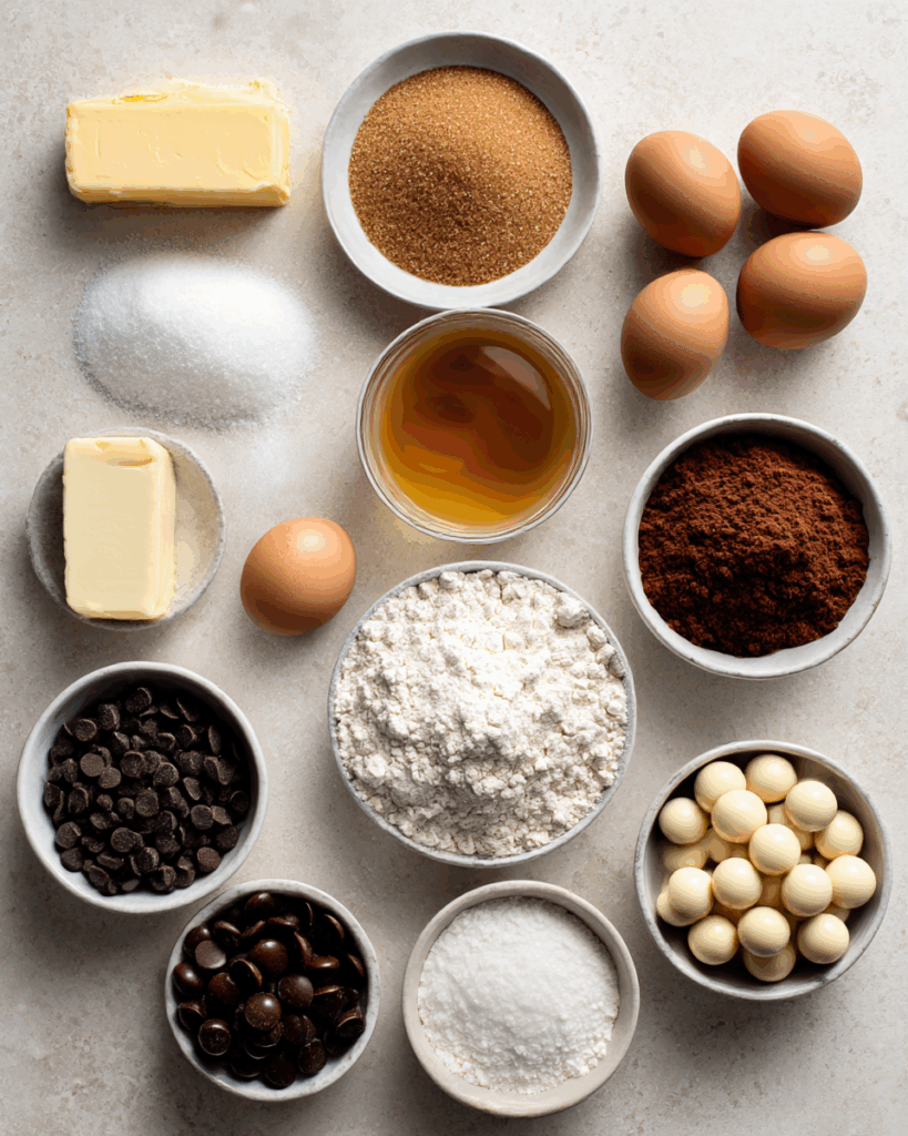 - 2 large eggs – For structure and fudgy texture.