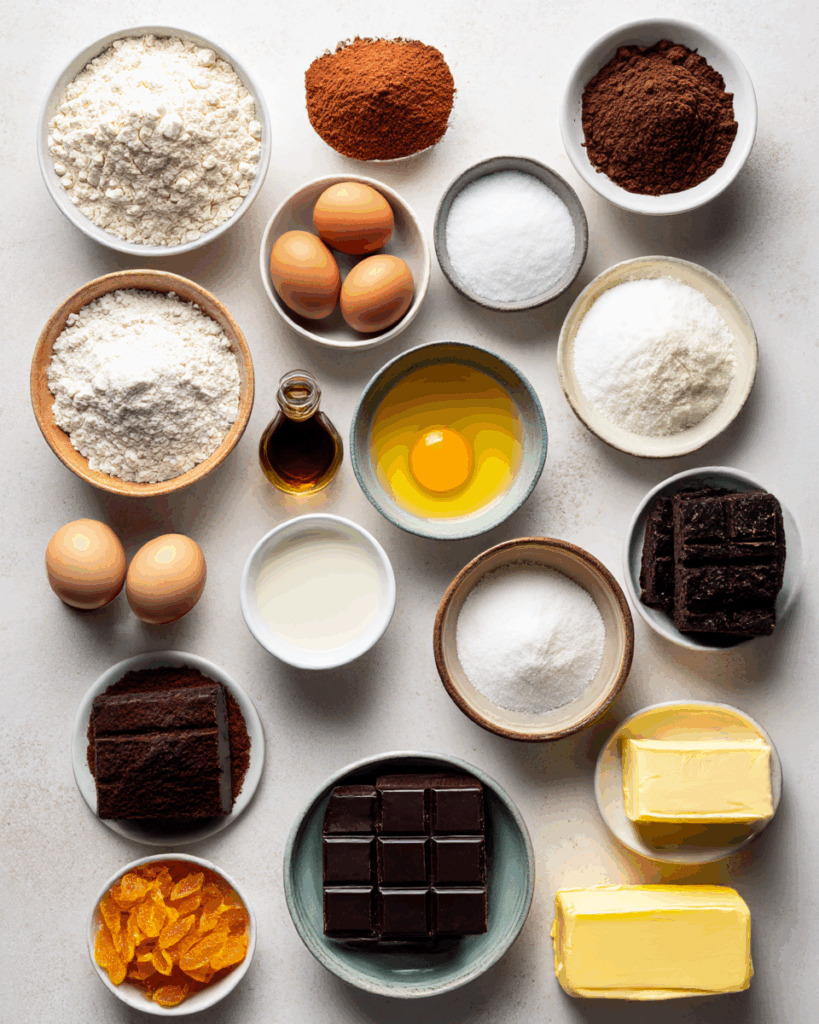 Each ingredient plays its part in building this chocolatey masterpiece. Here’s what you’ll need: