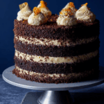 Rich, moist, and unapologetically indulgent, this Chocolate Orange Blackout Cake is a showstopper in every sense of the word. Layers of dark chocolate sponge are infused with citrusy orange zest and smothered in silky orange-scented frosting. Topped with golden candied peel and coated in a blackout crumb shell, this cake isn’t just dessert—it’s drama on a plate.