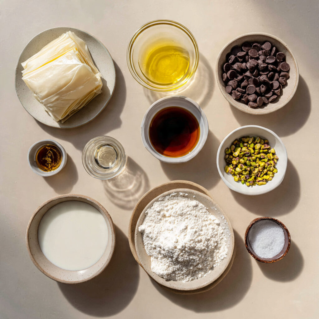 This bougatsa was inspired by a winter morning in a quiet Athenian café, where I tried the classic version filled with custard and dusted with powdered sugar. But back home, I couldn’t stop dreaming of a version that combined creamy chocolate with roasted pistachios. So I played with the ingredients and textures, keeping the iconic crispy phyllo but filling it with a rich chocolate-pistachio center instead. The result? Layers of comfort, with a hint of decadence.
