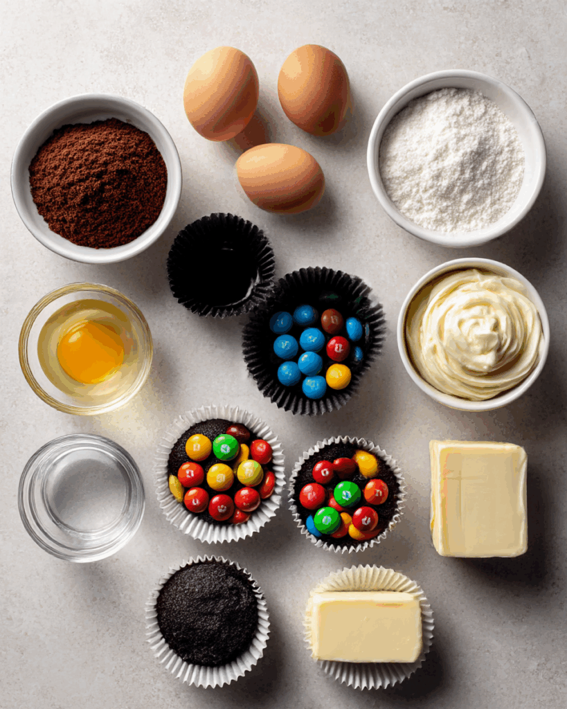 M&M Candies: These tiny, colorful chocolates are the perfect edible “lights,” giving your cupcakes instant holiday charm and crunch.