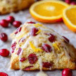 These Cranberry Orange Scones are tender, buttery, and bursting with tart cranberries and fresh citrus flavor, topped with a sweet orange glaze.