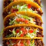 Crispy beef tacos filled with seasoned ground beef, fresh toppings, and melted cheese for a quick and satisfying meal.