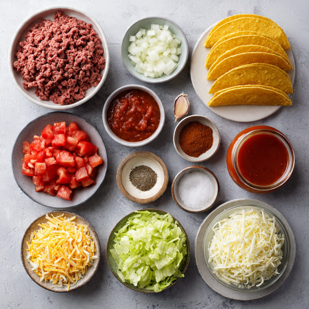 It all comes down to that golden shell. Light, crispy, and just sturdy enough to hold all the goodness inside. Then comes the savory beef, perfectly seasoned, warm and rich, paired with fresh toppings that add brightness. Every bite is balanced, crunchy, juicy, and fresh all at once. And now let’s dive into where these tacos come from.