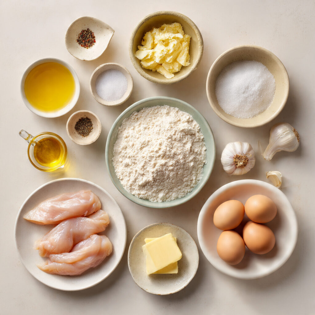 - Assemble the Dish: Dip each chicken tender into egg, then coat thoroughly in the flour mixture.