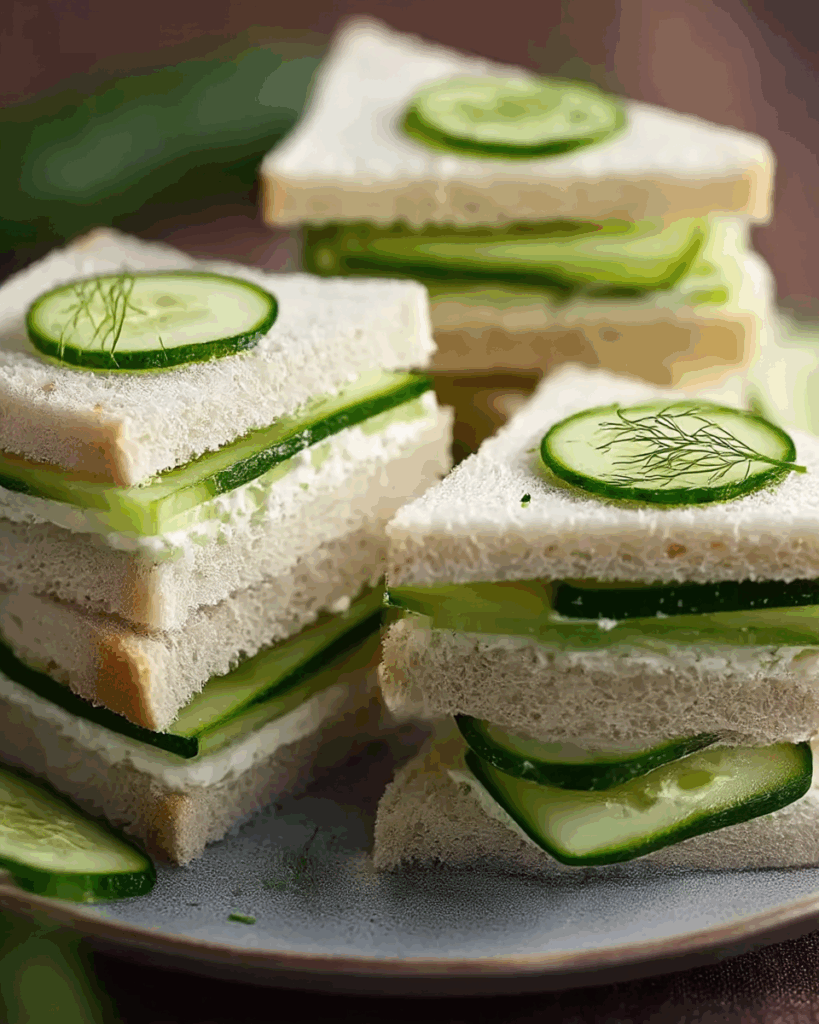 The beauty of cucumber sandwiches lies in their contrasts: soft bread against crisp cucumber, creamy spread balanced by a hint of lemon and dill. Every bite is cooling, delicate, and utterly refreshing, making them perfect for warm days or afternoon treats.