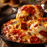 A cheesy, meaty Deep Hamburger Sausage Pepperoni Bake packed with ground beef, spicy sausage, gooey mozzarella, and crispy pepperoni. It’s like deep-dish pizza meets pasta casserole—perfect for family dinners or party nights.