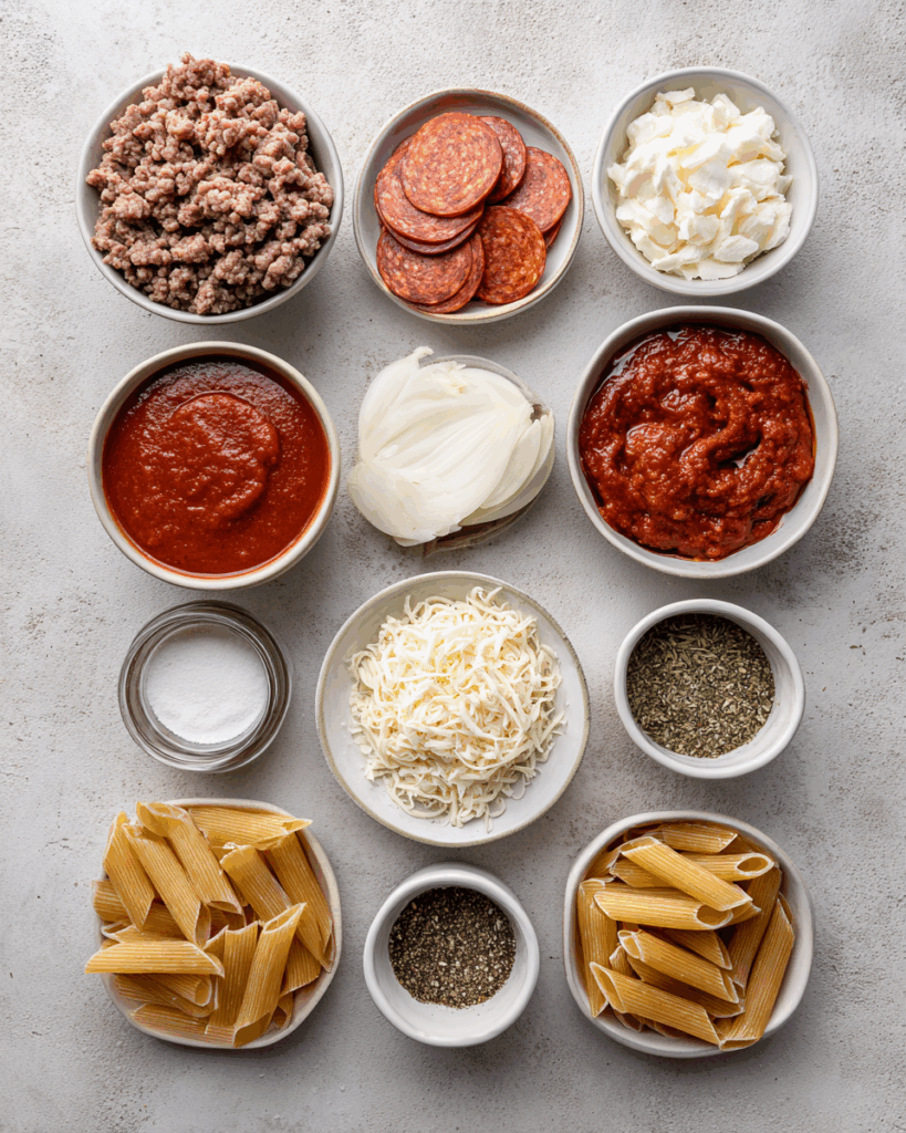 This recipe came together on a chilly weekend when all I wanted was a hot, cheesy, comfort-loaded meal but didn’t want to order pizza—again. So I took my favorite pizza toppings, mixed them with pasta, and baked everything in one deep, bubbly dish. The result? A ridiculously satisfying bake that hits all the right notes: meaty, melty, and mouthwatering. Now it’s a family favorite we pull out any time we need a serious dinner win.