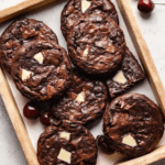 What makes these cookies truly unforgettable is the harmony between rich, almost brownie-like centers and those gooey, sweet white chocolate bits. The outer edges have a gentle crispness that gives way to fudgy insides — it’s texture heaven. The cocoa is bold, but balanced, making each bite complex and comforting.