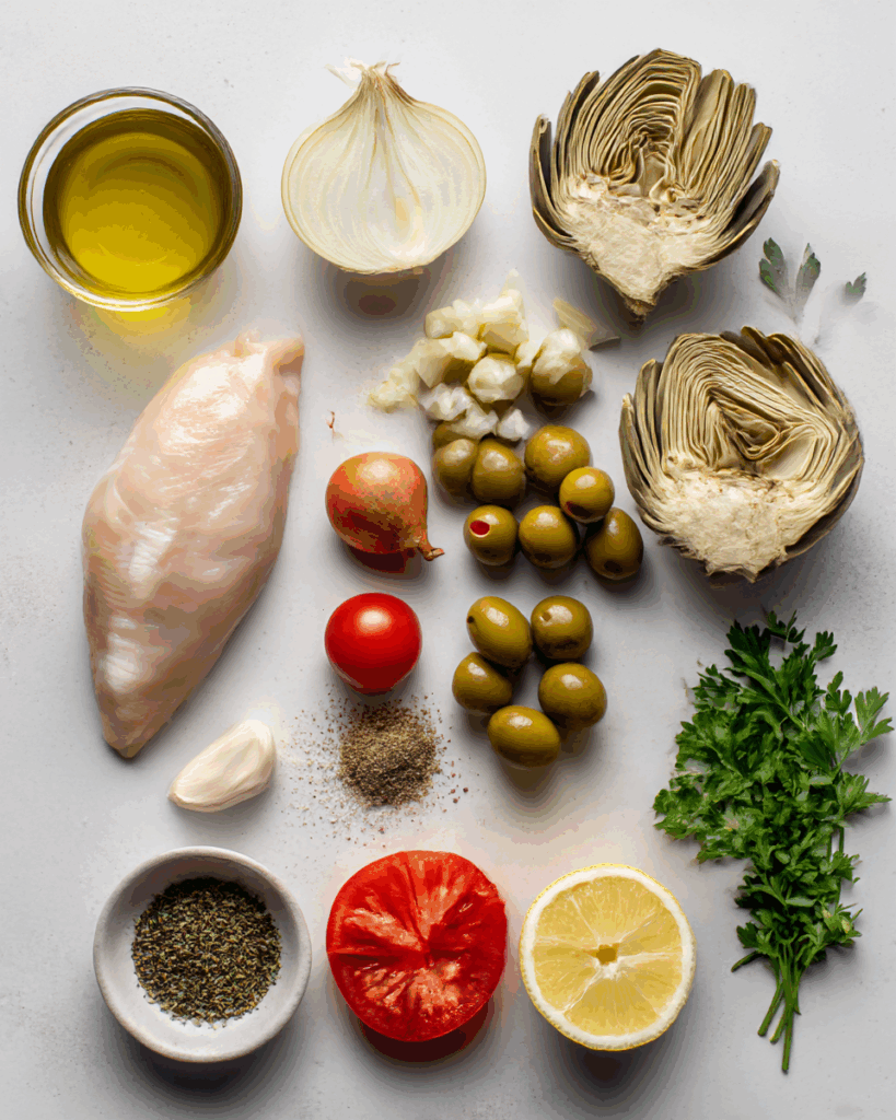Ingredients in Double-Duty Chicken with Olives & Artichokes