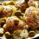 Double-Duty Chicken with Olives & Artichokes is more than just a one-pan wonder — it’s a celebration of bold, rustic flavors that feel both comforting and elevated. Whether you enjoy it hot off the stove or reinvent it for tomorrow’s lunch, this dish is the perfect mix of practical and delicious. So grab your skillet and get ready to fall in love with the magic of Mediterranean simplicity.