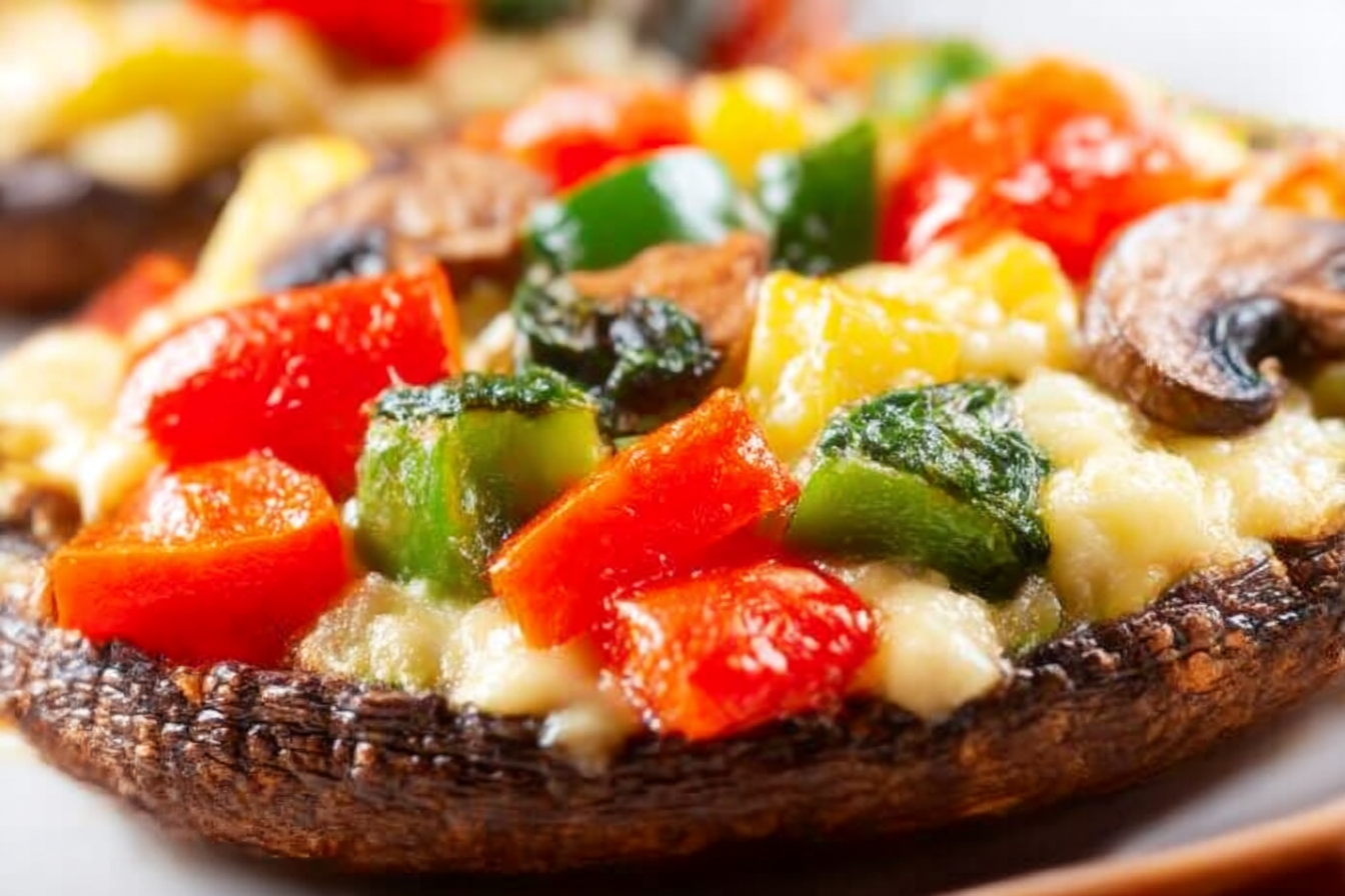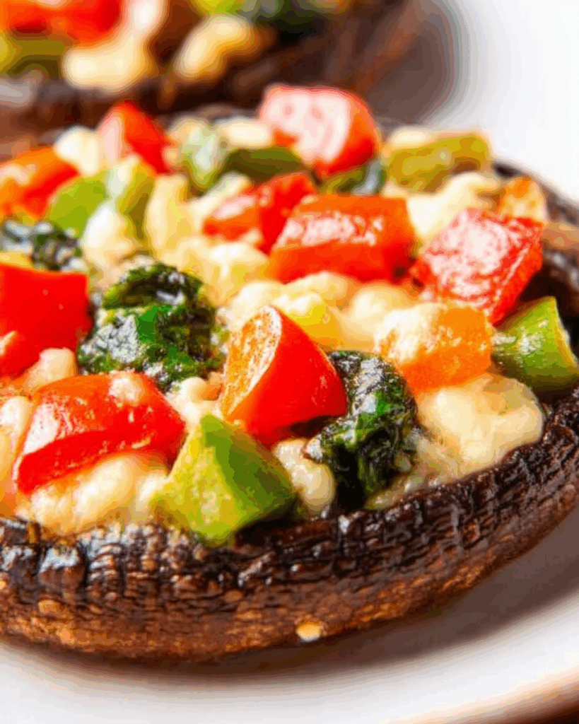 The juicy base of grilled portabella meets the melty pull of mozzarella and the crisp bite of fresh veggies. Every layer brings contrast — smoky, creamy, sweet, and herby. The real secret? Let the mushrooms caramelize slightly before adding toppings. That’s where the magic happens.