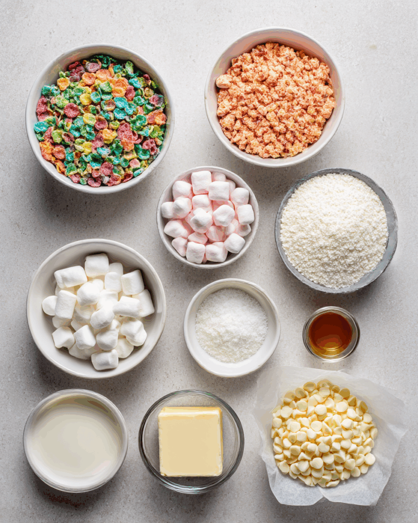 - Fruity Pebbles cereal: The crunchy base full of bright fruit flavour and vivid colours—making the bars visually and flavour‑wise appealing.