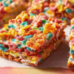 These Fruity Pebbles Milk ’n’ Cereal Bars bring together childhood cereal nostalgia and gooey marshmallow fun into a bright, easy‑to‑make treat. They’re fast, colourful, shareable and customisable—whether you’re making snacktime special, packing lunches, or hosting a party. Once you take that first bite—crisp‑chewy cereal, sweet marshmallow binding—you’ll want to keep a batch on hand. Happy pressing, cutting, and indulging!