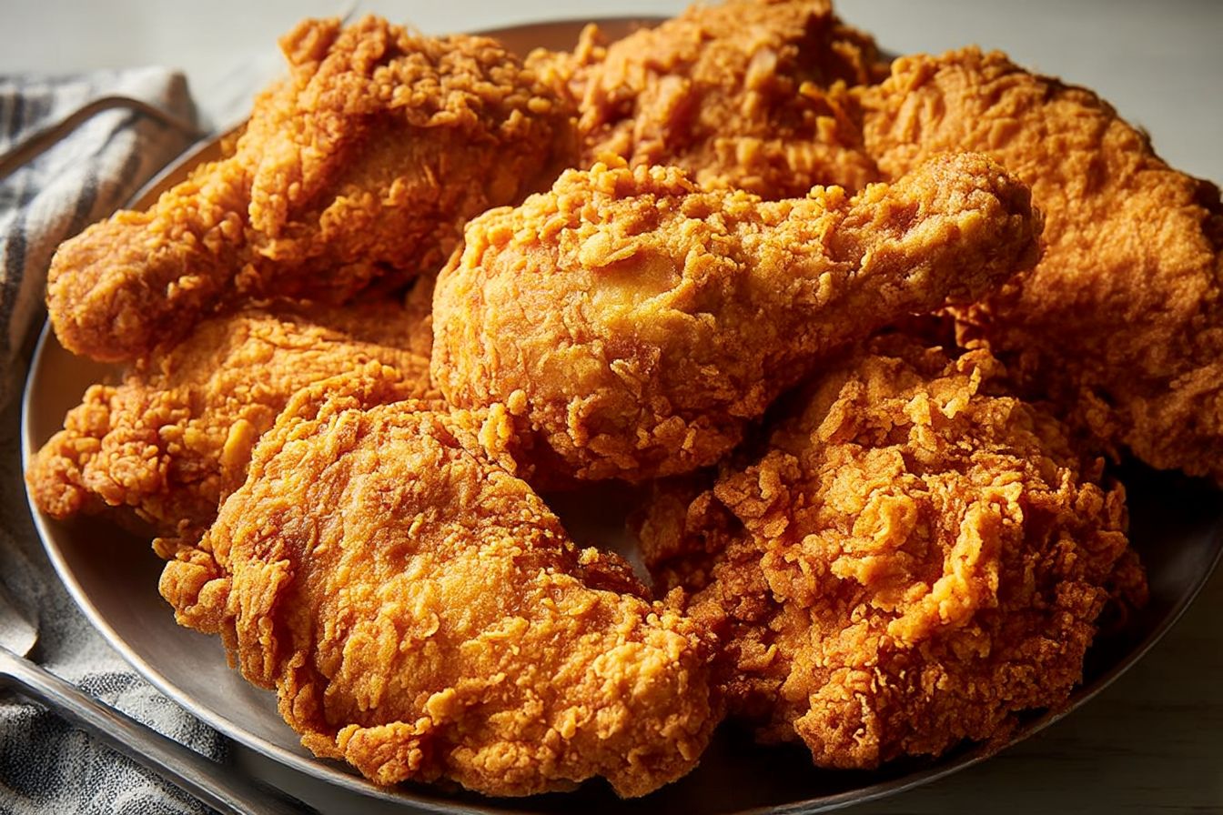 Marinate the chicken a day ahead for maximum flavor. Once fried, let cool completely before storing. Reheat in the oven at 375°F (190°C) for 10–15 minutes to restore crispiness. Leftovers keep in the fridge for up to 3 days. Not recommended for freezing post-fry, but raw marinated chicken can be frozen.