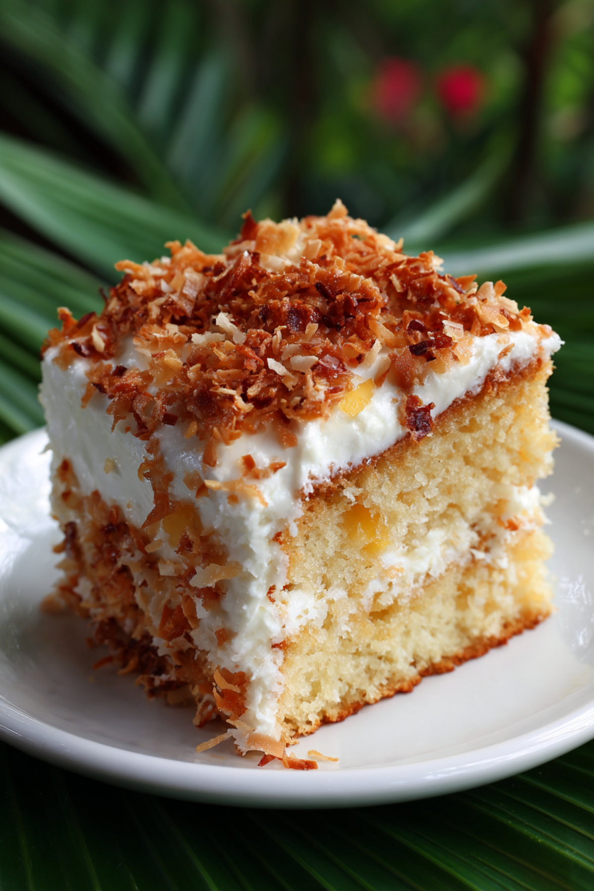 This cake carries a sunny kind of nostalgia. I first tried it at a beachside celebration, where the scent of coconut mingled with ocean breeze and the cake was the crown jewel of the dessert table. Since then, it’s become a favorite for family gatherings, summer birthdays, and yes—even weddings. It’s one of those bakes that instantly brightens the mood.