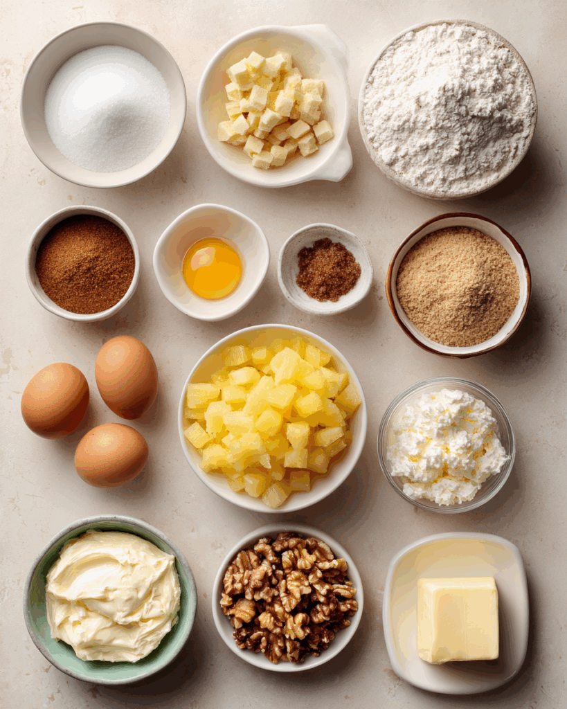This cake is magic in texture. You get moist, soft crumb from the pineapple and oil, the crunch of nuts and toasted coconut, and the velvety smoothness of cream cheese frosting. Flavor-wise, it’s a tropical symphony of sweet, tart, and just a whisper of salt.