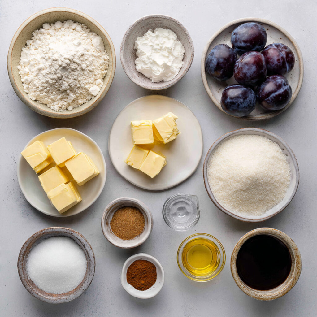 - Fresh Plums: 5 to 6 medium, sliced — The juicy, tart centerpiece of the tart.
