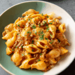 The pasta should be tender but not mushy, with every shell filled with that savory, creamy beef sauce. The flavor is meaty and cheesy, with just a touch of sweetness from the tomato paste and richness from the cream. It’s smooth, cozy, and incredibly satisfying.