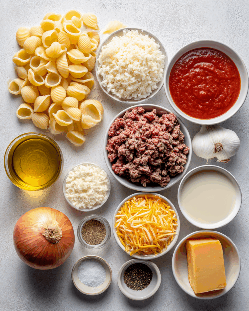 Cheddar Cheese: Sharp cheddar gives you that classic “cheeseburger” flavor, melting beautifully into the sauce and creating a creamy, cohesive dish.