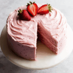 A soft and tender Homemade Strawberry Cake made with fresh strawberries, layered with sweet strawberry jam, and topped with creamy strawberry frosting. Perfect for any celebration or a simple summer treat.