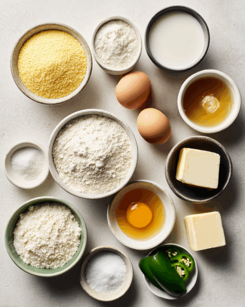 This recipe was born out of a love for contrasts. I wanted something that combined the comfort of classic Southern cornbread with a little unexpected spark. One chilly evening, I drizzled some leftover hot honey over a warm slice of jalapeño-studded cornbread and it was an instant game-changer. The result? A golden, tender, slightly crumbly loaf with pockets of green heat and a honeyed glaze that brings it all together. It’s now my go-to for everything from barbecue nights to cozy brunches.