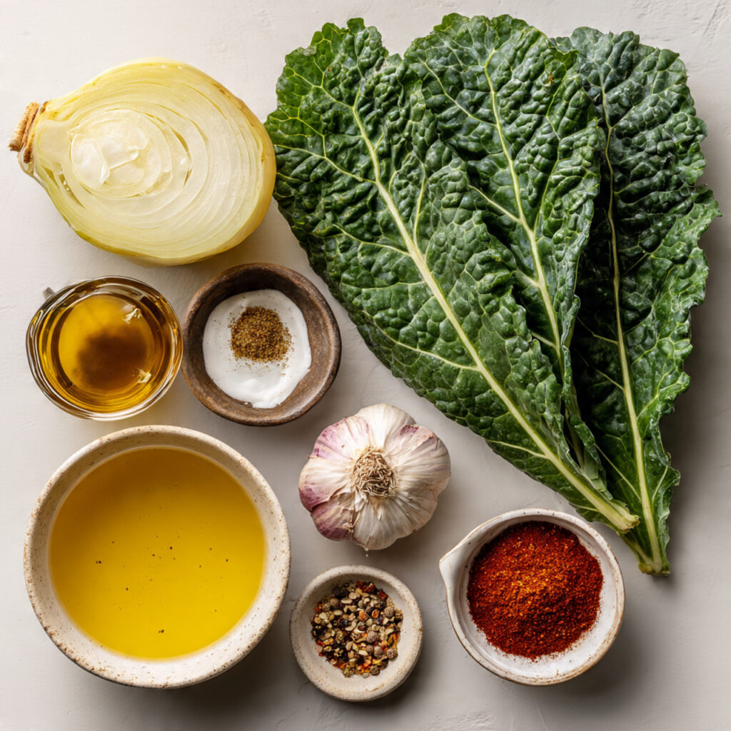 - Collard Greens: 1 large bunch (about 12 oz), stems removed and chopped.